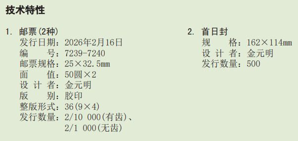 2026年2月16日发行《庆祝伟大领导者金正日同志华诞84周年》编号7239-7240